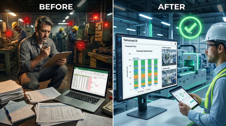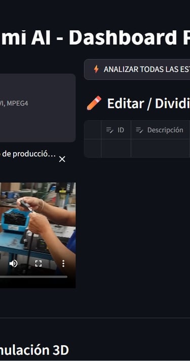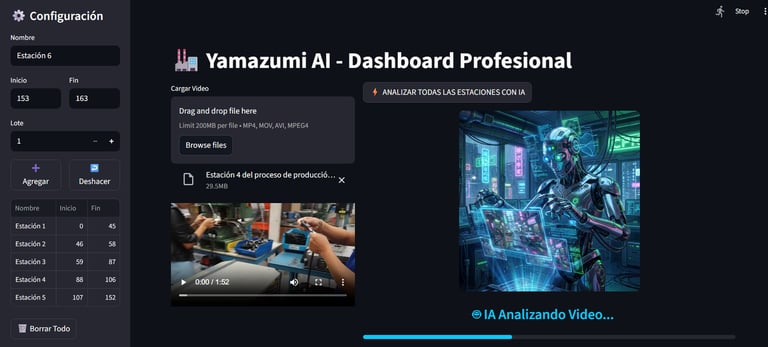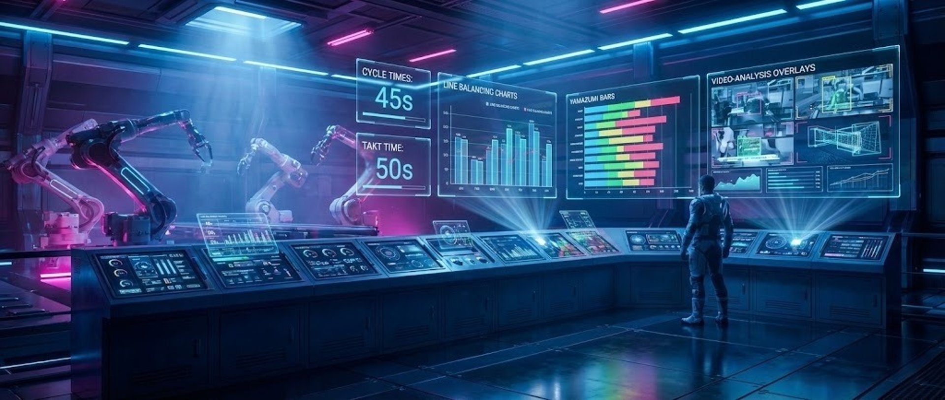 Yamazumi AI transforma un simple video de tu línea de producción en un análisis profesional: diagrama Yamazumi, balanceo óptimo, reportes automáticos y propuestas de mejora basadas en IA.