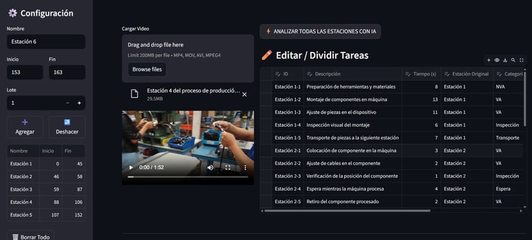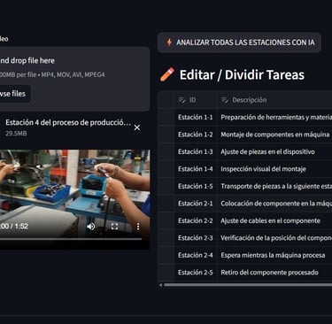 Graba tu proceso desde un ángulo donde se vean claramente las operaciones y estaciones. Sube el video a Yamazumi AI… y el sistema empieza a trabajar automáticamente.