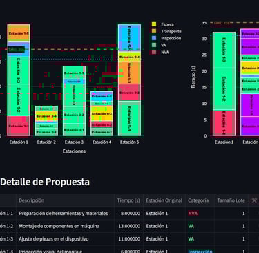 Identifica cuellos de botella, balancea estaciones y propone mejoras accionables.